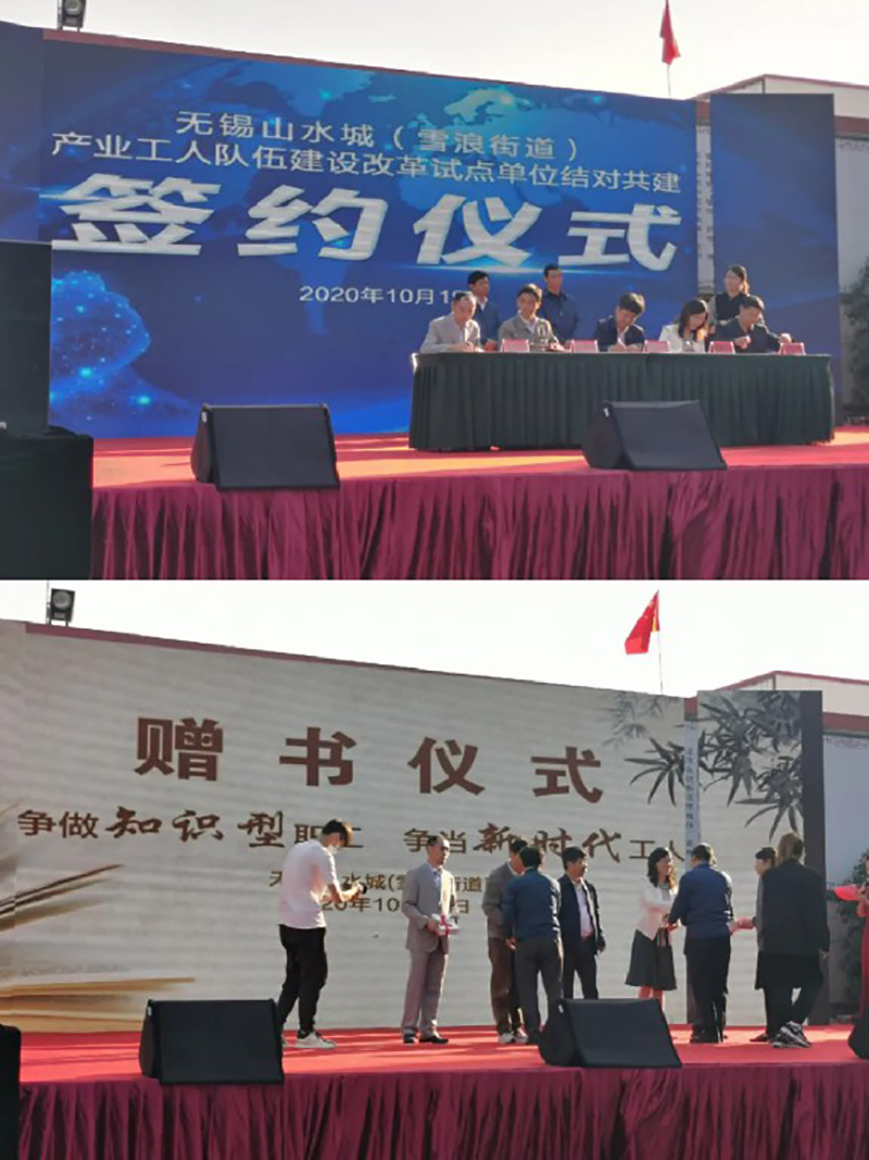 隨后,山水城五家工人隊伍建設改革試點企業簽署了結對協議,山水城(雪浪街道)總工會向五家企業贈送了部分書籍。